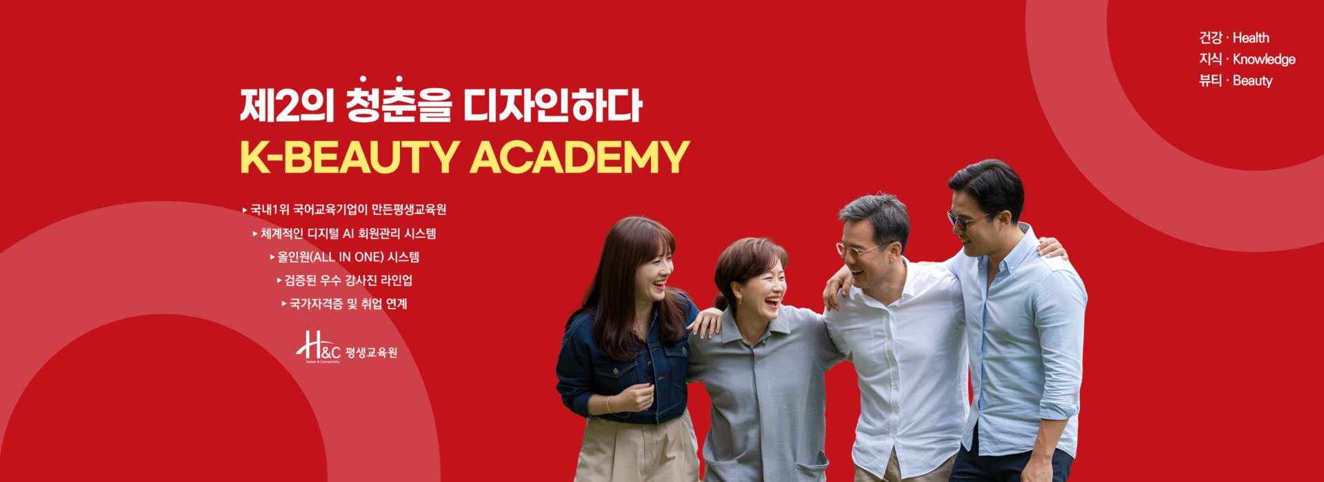 건강(Health) 신체 활력 & 뷰티케어, 지식(Knowledge) 뇌 교육 & 명상,